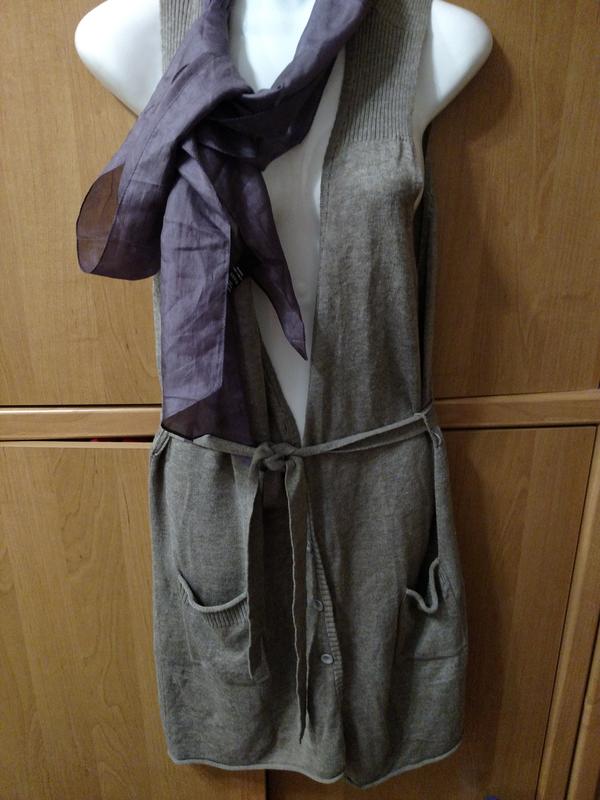 Тоненький теплый кардиган шерсть мерина,вискоза,шелковистый цвет,бежевосерый
