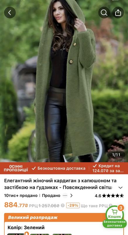 Повсякденний приємний на дотик кордиган з капюшоном,середньої щільності,на двох ґудзиках.Купила на Temu,не підійшов розмір.Підійде на р50-52. Продаю дешевше ніж на сайті.Заміри за запитом.