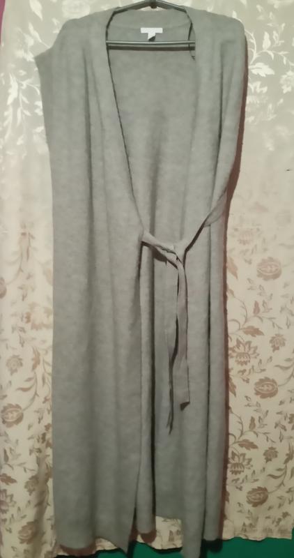 стильный брендовый женский длинный серый кардиган без рукавов с поясом