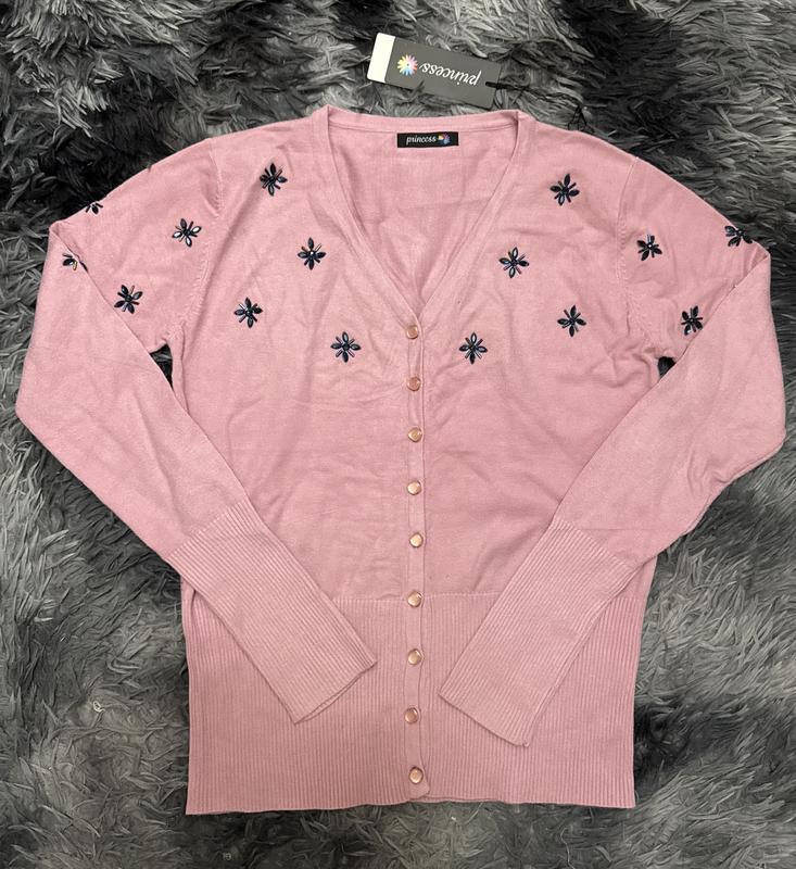 Новий пудровий/ рожевий кардиган на красивих ґудзиках попереду та з вишитим візерунком, розмір універсальний 42/46, неймовірний мягенький та шикарний склад з кашеміром, всі бірки на фото, фото на собі не роблю