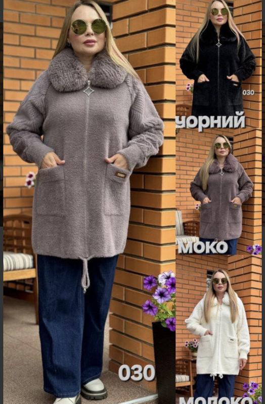 Застібка-блискавка. Кишені накладні. Комір з хутра відстібається. Розмір універсальний, підходить на розміри 48-56 Довжина виробу 82-83 см. Довжина рукава 74см від горловини. Прання проводиться за температури 30°С. Наталія кл