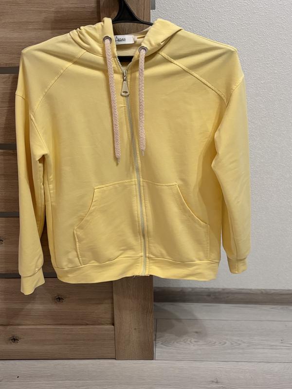 Легка кофта з капюшоном, на замку, приємний жовтий колір