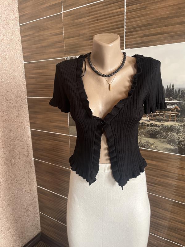 Трикотажный укороченный кардиган в рубчик на одной пуговице На рост 165-88А