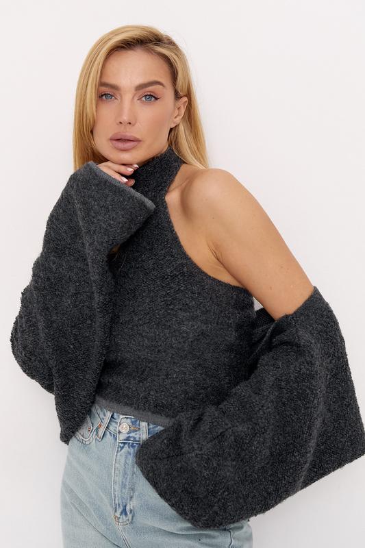 В'язаний комплект з балеро і топом під шию, в’язаний кардиган