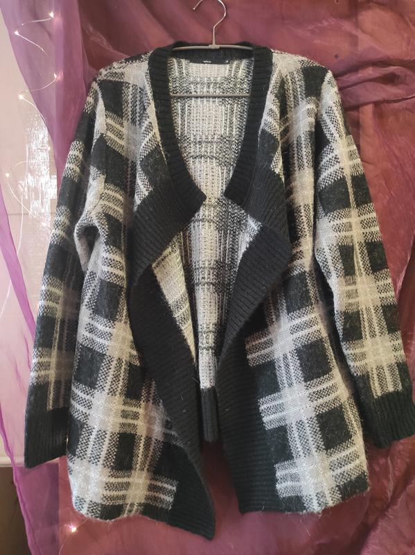 Кардиган с хорошим составом: 30% шерсть 15% мохер 30% акрил 20% нейлон Длина по спинке 68 см Указан размер М, ностила как XL Узор - тартан