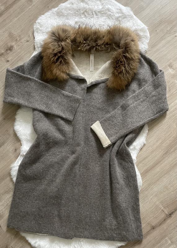 Стильний теплий Кардиган з Ангори з натуральним хутром , яке можна відстебнути , стан ідеальний розмір one size, заміри: груди 69, довжина 88.