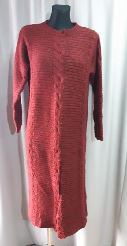 Кардиган бордовый Olko. Размер L. ПОГ-56, ПОТ-50, ПОБ-54, Рукав от шеи-70, Длина-120. Новый.