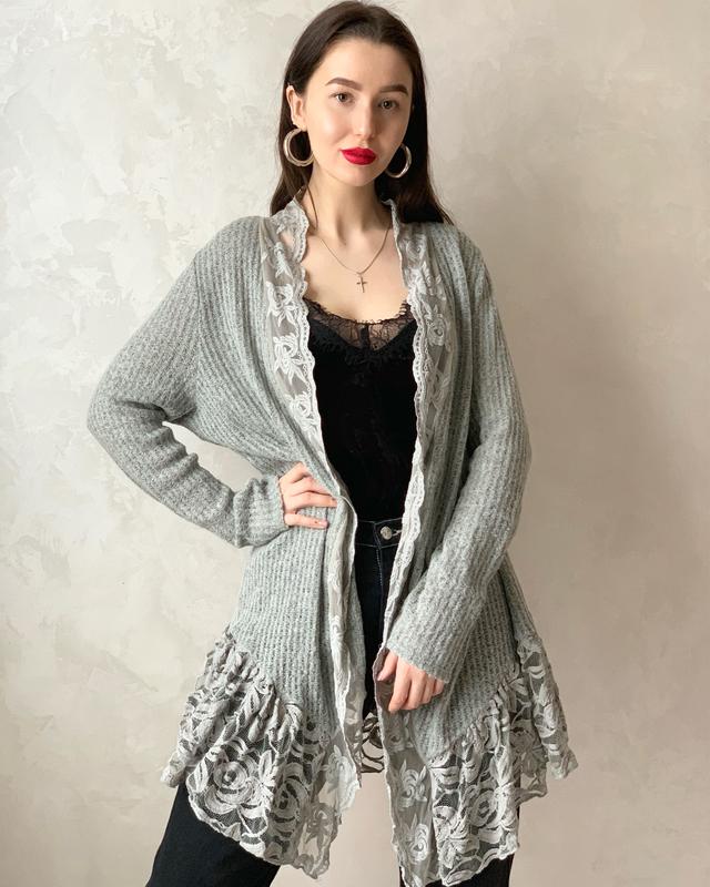 Шикарная кофта с кружевными оборками Светло серого цвета Размер L