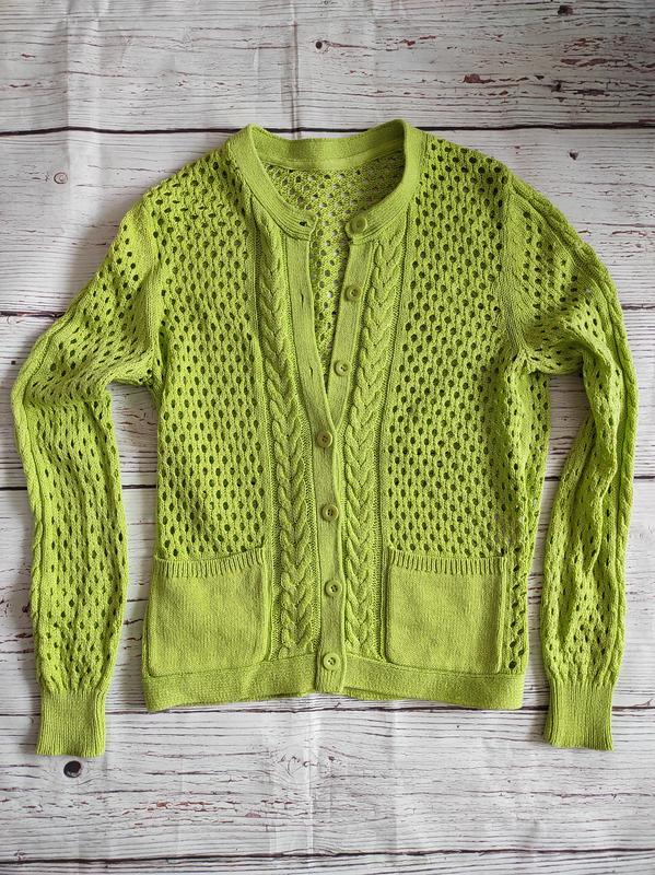 Кардиган перфорированный из хлопка, красивый цвет, отличное состояние, длинна 60см, плечи 40см, рукав 67см, ширина 50см, на S/M