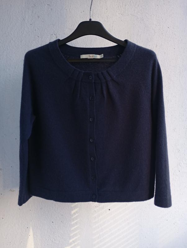 Кардиган, кофтинка синього кольору з рукавом реглан 3/4. НОГ - 44 см, НОТ - 43 см, НОС - 41 см, ДВ - 44 см, ДР від горловини - 51 см. У гарному стані.