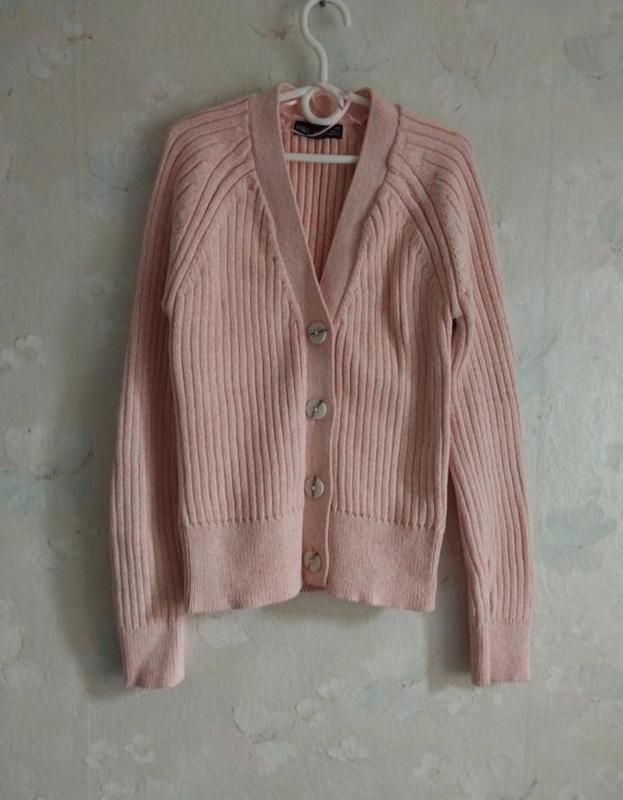 Нежный меланжевый цвет "Pink Mix" бело-серые крупные пуговицы. V-образный вырез горловины визуально удлиняет шею. 👌 Стан идеален. ⬇️ 94% бавовна 6% полиамид