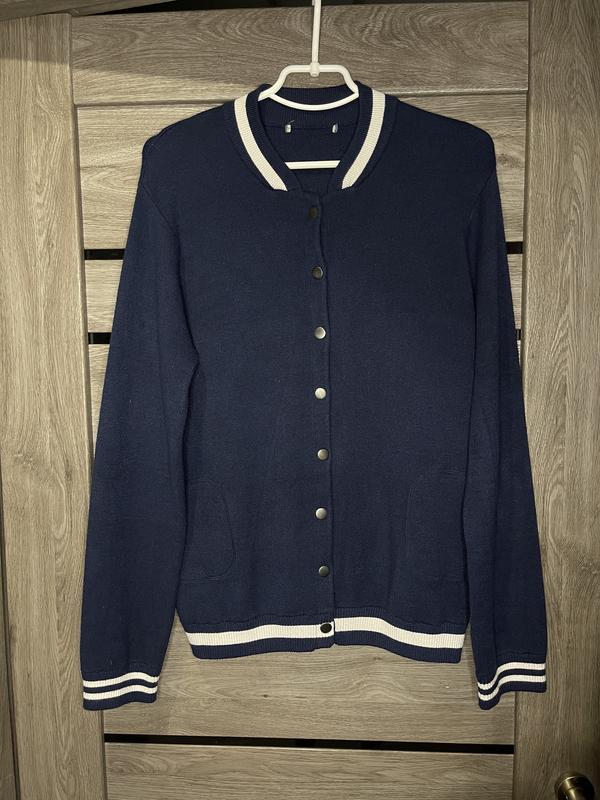 Продам кардиган / бомбер с мего приятной тканью!) В составе вискоза, но саму бирку срезала так, как была очень длинной и неудобной Темно синий цвет, кнопки рабочие В идеальном состоянии, без катышек, дырок и прочего, немного присутствует шерсть, но я роликом уберу Размер Л Замеры: Пог - 55 Длина - 67