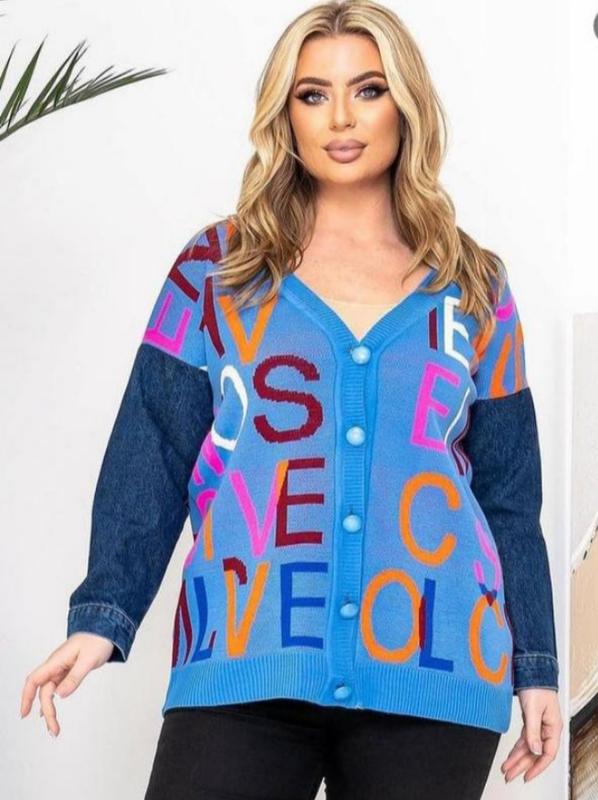 Оригинальный, яркий кардиган с джинсовыми рукавами. Состояние очень хорошее, хотя и есть следы ношения, но очень незначительные. Вещь моя собственная, стал слишком мал. Длина 75 Ширина под подмышками 64 Более подробно на фото