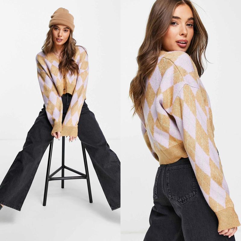 Для більш точного визначення, виміри, порівнюйте із вимірами подібної речі, а не зі своїми обсягами. Ніжний укорочений кардиган у клітинку. Щільна машинна в'язка. Теплий та приємний. Лінія плечей спущена. Застібається на ґудзики. Стан: дуже хороший. Дефекти: ні. Розмір на бирці: S (Виміри виробу вимірюються у напівобхваті, а не від шва до шва!) Виміри виробу: Плечі 63 см., Рукав від горловини 81 см., Рукав 55 см., Ширина рукава 19 см., Напівобхват грудей 64 см., Напівобхват низ 55 см., довжина від плеча 47 см. довжина по спині 45 см. Склад тканини: бирка зрізана. Країна виробник: Туреччина. Бренд: Stradivarius. Оплата і доставка: Оплата на картку монобанк. Бронювання на оплату тільки 24г. При змінах наміру купувати обов'язково повідомляйте! Доставка: На час введення воєнного стану уточнюйте чи можлива доставка до Вашого пункту. Актуальні новини можна уточнити на сайті перевізника та за номером телефону контакт-центрів. Не забудьте ПІДПИСАТИСЯ щоб бути в курси всіх новинок та розпродажів!