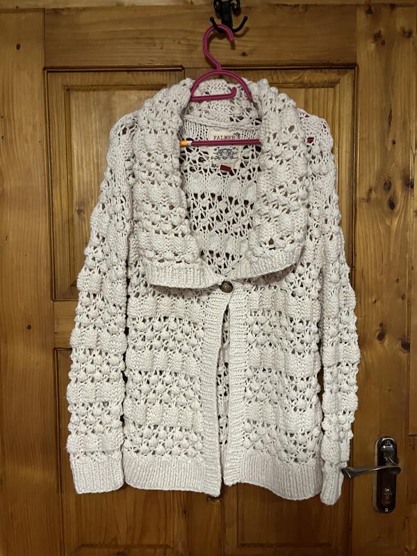 Продаю кардиган , новий. Підходить на розмір M L, чудово маскує животик)) стильно з чорним гольфом , освіжає і доповнює образ. Перешлю поштою. Плечі 45 см. Приємний на дотик, мʼякий і розтягується.