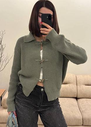 Трикотажная кофта с оригинальной фурнитурой и акцентными завязками 💫 Мягкая фактура, свободный силуэт и трендовый воротник создают современный, легкий и очень атмосферный образ Производитель: Турция Размер: универсальный: (42-48) Тканина: 80% бавовна, 20% поліестер Беж, оливка, шоколад, черный