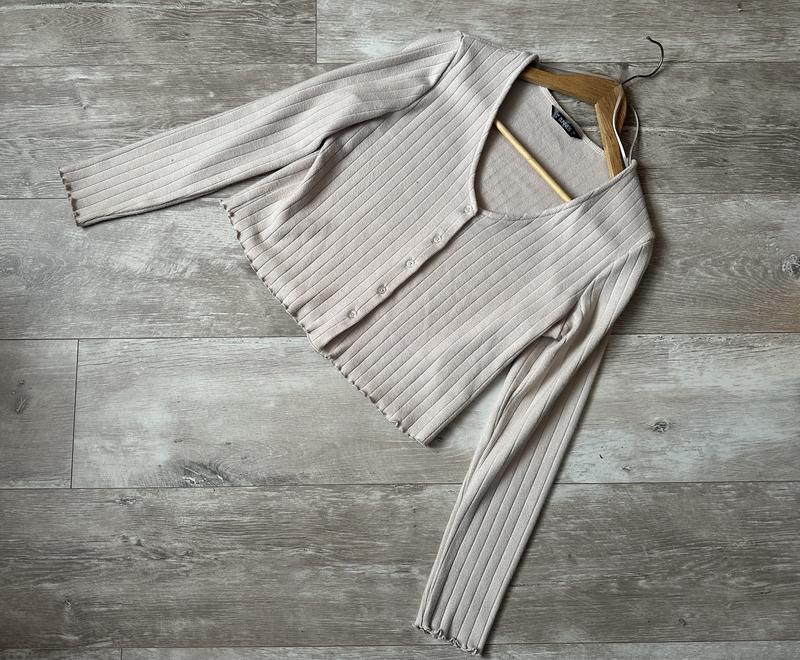 вкорочений кардиган із суміші бавовни з текстурованою обробкою, що має ґудзики спереду Розмір м Стан бу,без нюансів Гарний колір Довжина 48 Пог 46 плечі 40 Рукав 58 Тягнеться