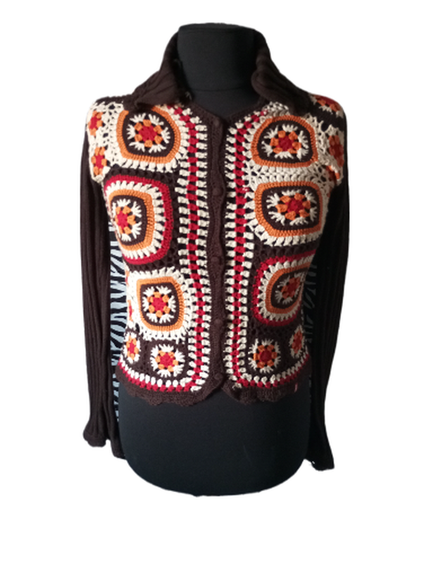 Винтажная кофта, передняя часть выполнена в стиле " бабусин квадрат"