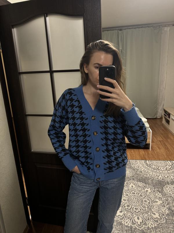 Кардиган дуже тепленький з принтом гусяча лапка, підійде на розмір С-М