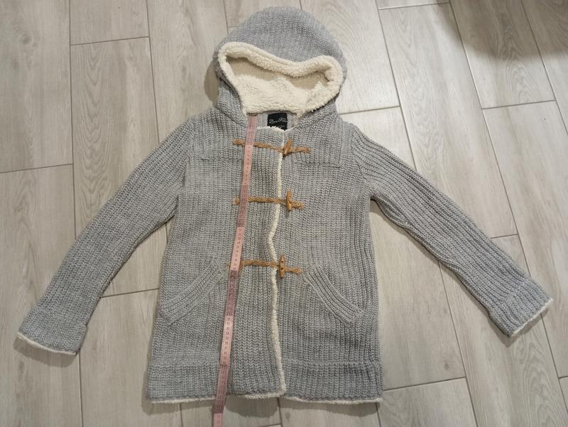 ✨ zara knit. теплый вязаный кардиган/пальто дафлкот с капюшоном, шерпа подкладка. размер м
