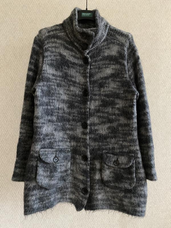 Уютный и стильный кардиган от Marc Cain – теплый, легкий и очень приятный к телу. Модель со слегка оверсайз силуэтом, высоким воротником-стойкой, застежкой на пуговицах и двумя накладными карманами спереди. С обратной стороны по талии - шнурок для регулировки посадки. Рукава на подкладке - комфорт при ношении гарантирован 💫 📏 Размер по бирке: N 2 (около M) Плечи спущенные - 44 см Длина рукава - 55 см ПОГ — 47 см Длина: спереди 72 см, сзади 68 см ПОБ — 55 см 🧶 Состав: 43% mohair 43% virgin wool 14% nylon ✨ В идеальном состоянии, без дефектов. 💰Цена: 750 грн #кардиган #мохер #шерстянойкардиган #MarcCain #свитер #тёплыйкардиган #серыйкардиган #одежда #мода #осеньзима #vintagefashion #premium