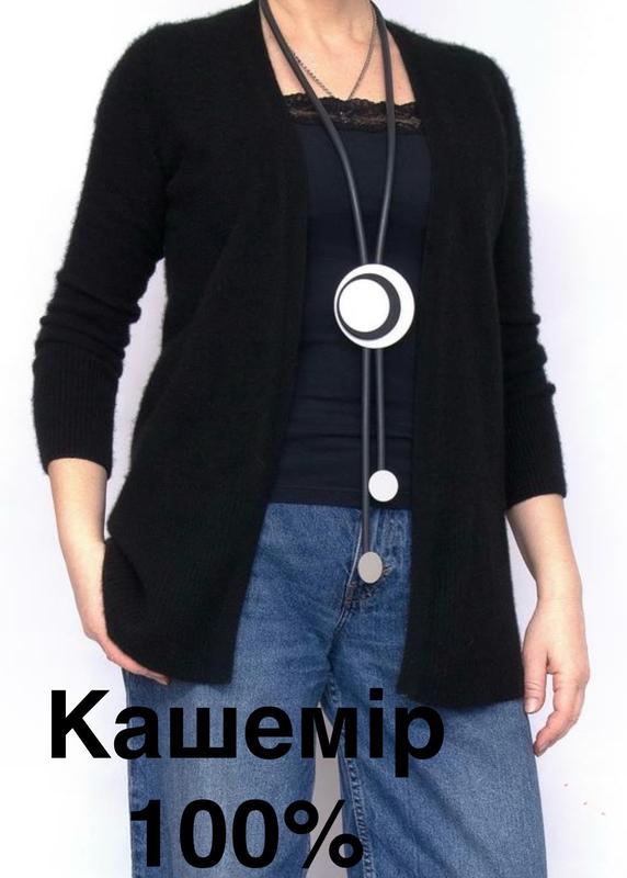 Базовий, універсальний, затишний, теплий Кардиган, кашемір 100%,, легко вписується в гардероб. Крій прямий, застібка не передбачена. Виконаний зі щільного пухнастого м'якого теплого кашеміру в насиченому чорному кольорі. Стан близький до ідеального, без нюансів Розмір вказано 38, але буде вільніше на 36р Довжина 73, плечі 39, рукав 58 Півобєм груди по спинці під рукавами 48