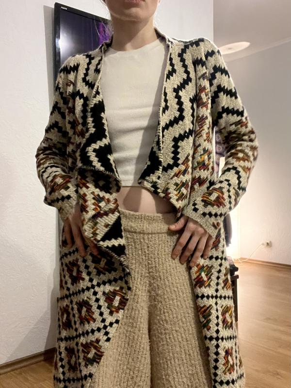 Затишний асиметричний вʼязаний кардиган на запàх у стилі бохо 🌙 Тепленький та комфортний ❣️ довжина по спинці: 75 см довжина по переду: 90 см півобхват: 44 см плечі: 49 см рукав від плеча: 58 см