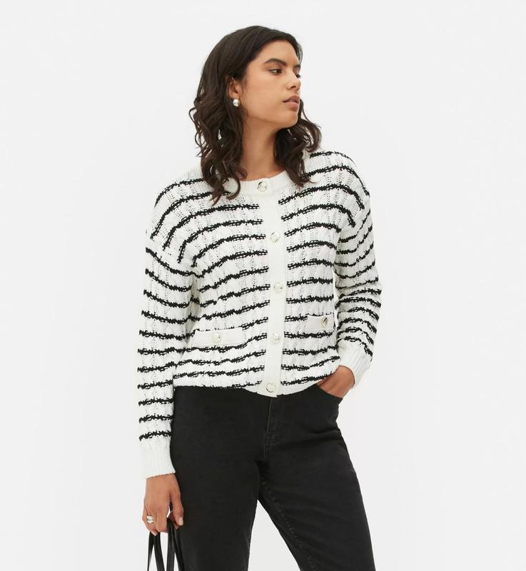 Добрый день, для точного определения подойдет вещь или нет, сравнивайте любое с измерениями своей подобной вещи, а не со своими объемами. Рекомендую перед заказом прочитать информацию в разделе "Про меня" это займет несколько минут Вашего времени но там много полезной информации 🫶 Очень качественный хлопковый белый кардиган в черную полоску. Круглая не глубокая горловина. Линия плеч спущена. Рукав длинный, запястья на манжете. Горловина, манжеты и низ вязкая резинка. Спереди имитация карманов на пуговицах. Застегивается спереди на пять пуговиц, также есть запасная пуговица. Кардиган толстой, слегка ворсистой нити, объемной вязки косы. Не тонкий, тяжелый. Мягкий и приятный к телу. Красиво тянется, не просвечивается, не колется. Цвет: Белый, Черный Принт: Смужка Размер по набору: EUR М, на наш 46-50 Состояние: Новый (сток) Эффекты: Без дефектов Замеры произведены в полуобхвате. Длина изделия от плеча 54см Длина рукава от горловины 77см Длина изделия по боковому шву 33см Полуобхват груди 59см Полуобхват талии 54см Полуобхват низ 47см Полуобхват рукава сверху 20см Полуобхват рукава посередине 12см Полуобхват рукава снизу 7см Склад: 100%Бавовна. Оплатить можно через Безопасную покупку или оплатить на карту Приватбанка. Доставка возможна Укр-почтой или Новой почтой. Брожение на оплату только одна сутки. Не забудьте ПОДПИСАТЬсь, чтобы не пропустить новинки и распродажи. Вдалих покупок 🌹