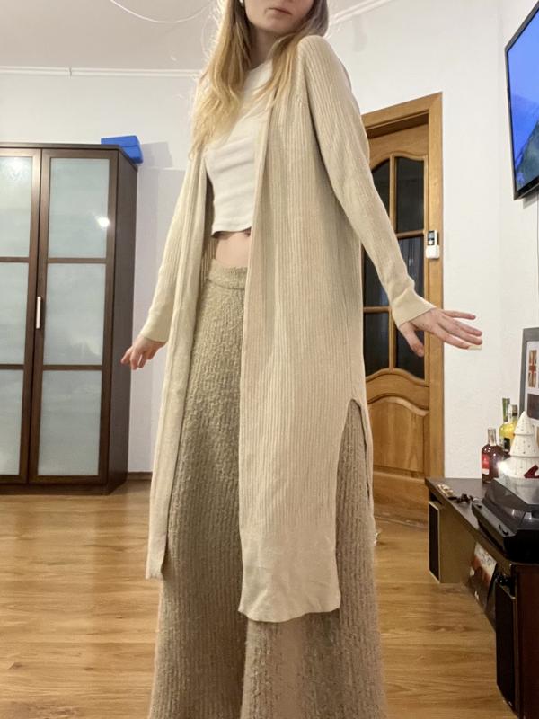 Довгий кардиган приємного пастельного кольору 🧥 Приємна до тіла тканина, дуже затишна річ 🥰 довжина: 107 см півобхват: 50 см рукав від горловини: 67 см