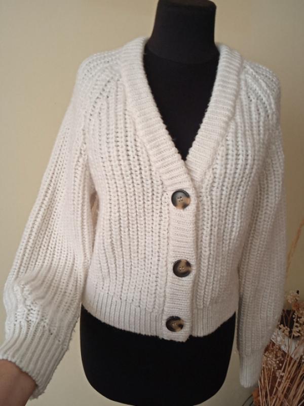 Длинна 48 см. Полуобъем груди 44 см. Рукава реглан от горловины 70 см. Дефектов нет. Цвет - белый.