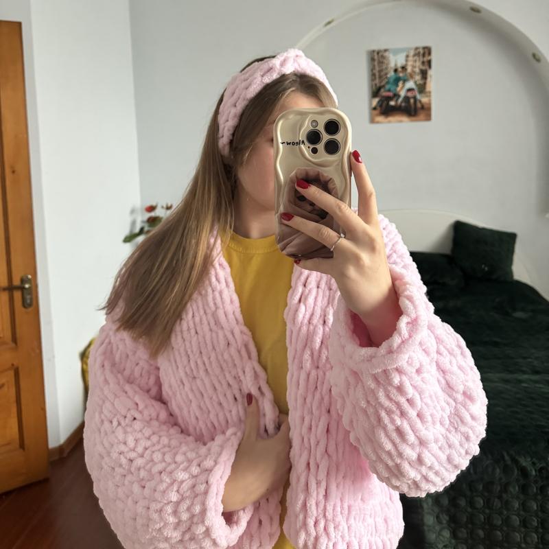 Звʼяжу для Вас таку хмаринку з будь якому кольорі та будь якого розміру💗 До кардигану можна додати повʼязку на голову у тому ж кольорі, що і основний елемент Дана модель йде без візерунків, але можу додати резинку на рукавчики або ж на талію Пишіть і ми узгодимо всі деталі та вартість цієї краси❤️🌸 Ціна комплекту на фото 1200 грн (кардиган+повʼязка)