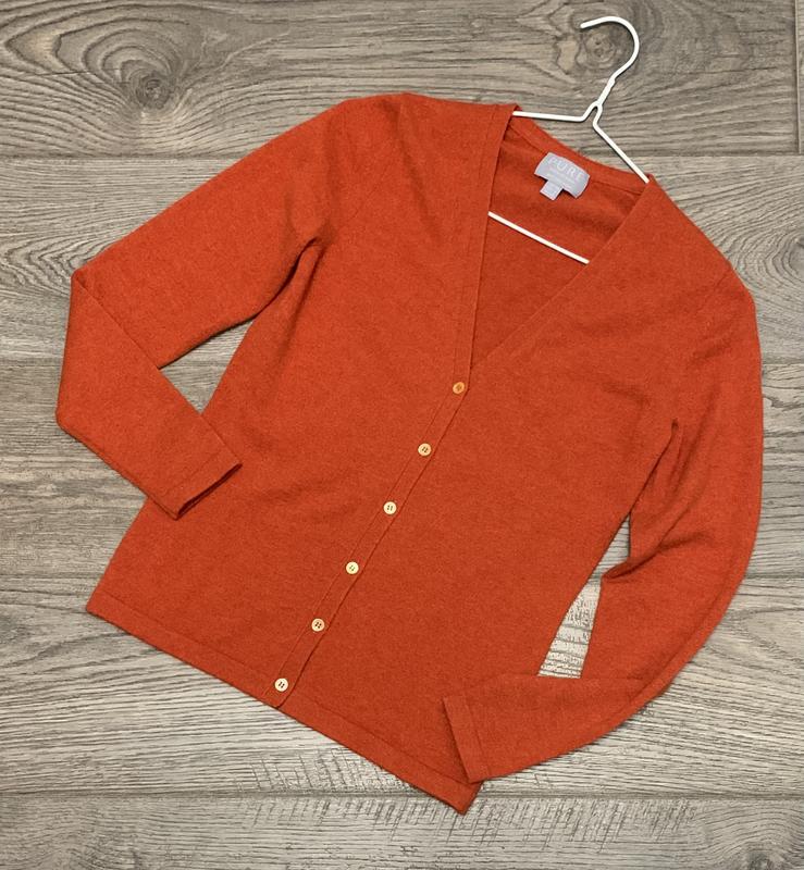 Кардиган/кофта кашемір Pure Collection р. S/36 Річ нова, без паперової бірки. Колір не такий яскравий як на фото. Реальний колір - теракотовий. ПОГ 41+ ПОТ 38+ Рукав 57 Плечі 33,5 Довжина по спинці 58