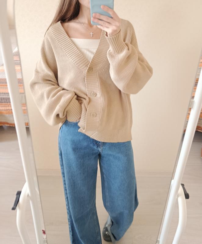 Продажа только при полной оплатке на карту!! Кардиган от COS. Состояние отличное. Плотный. Крой оверсайз. Базовый бежевый цвет. Спущенная линия плеча. Размер 40-42. 100% котон Длина 57см Рукав 56см, от горловины 78см Плечи 61см Пог 65см Поб 59см