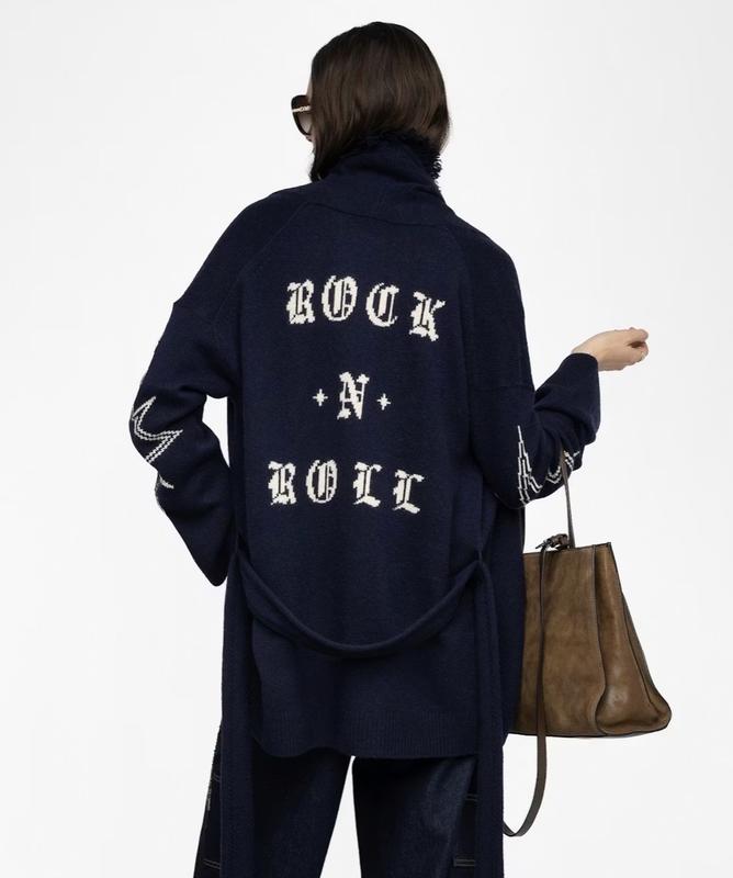 Кардиган из шерсти и кашемира - Бахрома - Модель интарсии - Перекрестное закрытие со съемным ремнем - Длинные рукава