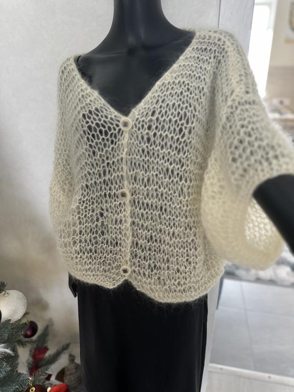 Кардіган хмаринка. Склад: 24% Вовна, 25% Мохер, 51% Акрил колір вершковий😍 розмір one size, довжина 60см