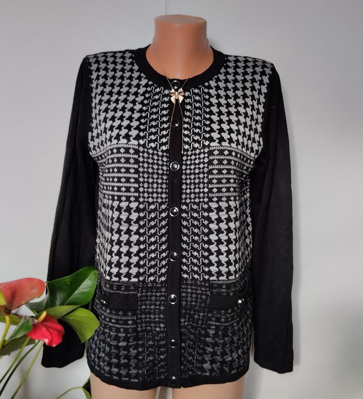 Классная кофта кардиган на пуговицах, карманов нет, есть обманки. Замеры: длина 64 рукав 62 пог 51-63 после 53-63