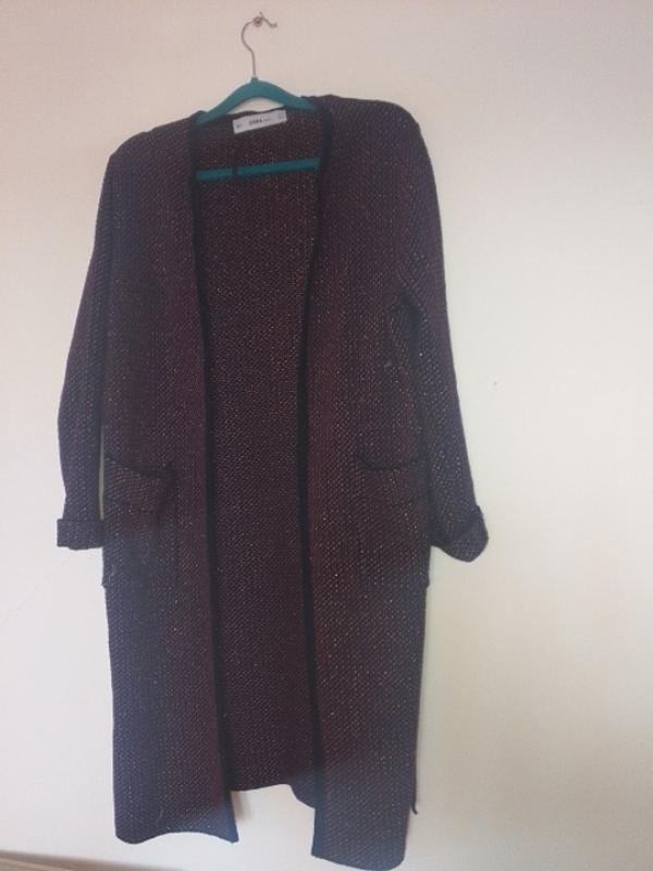 Стильный удлиненный кардиган, отвод Zara с карманами и разрезами по бокам ног-48 длина рукава -62 длина кардигана-103 см