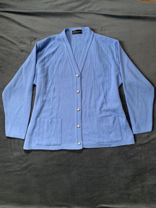 Красивий вінтажний кардиганчик в неймовірному блакитному кольорі😍 Стан - не ідеальний, дивіться фото Оплата лише на картку, повернення немає🫶🏼 Також можу віддати в подарунок до замовлення від 700 грн (просто напишіть мені про це)🥰 Оформлення «безпечною оплатою» буде відхилено❣️