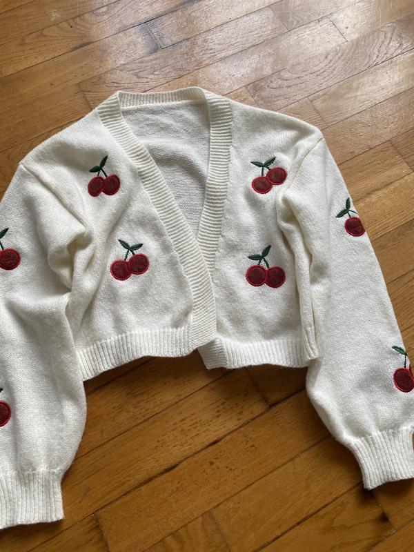 Укорочений кардиган з вишнями, вʼязаний, без застібок. Заміри в особисті надішлю