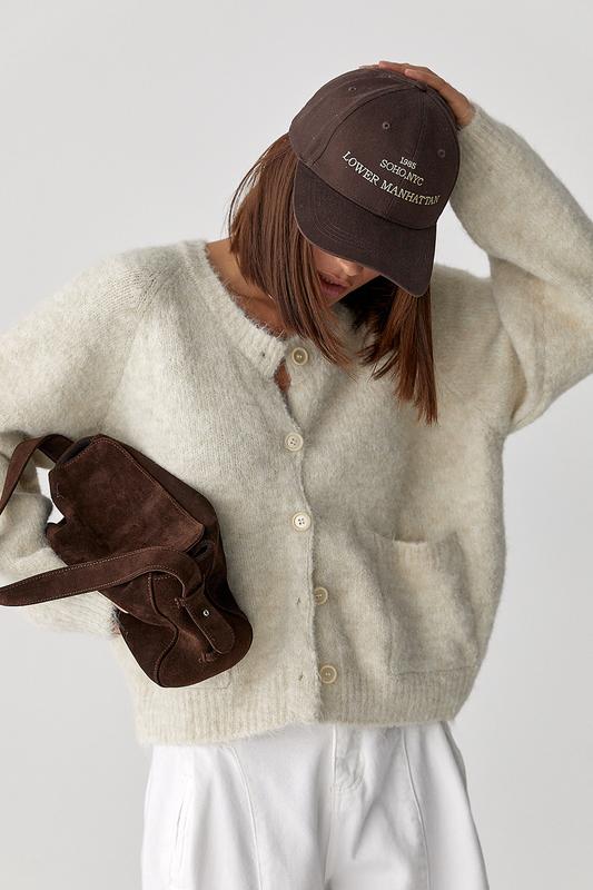 ЗАМІРИ ВИРОБУ Довжина переду виробу, см 54см Довжина рукава від горловини, см 68см Довжина рукава по внутрішньому шву, см 44см Ширина під проймами рукавів (над грудьми), см 60см РОЗМІРНА СІТКА ХАРАКТЕРИСТИКА ТОВАРУ Країна Китай Тканина В'язка Склад тканини 50% акрил, 50% вовна Параметри моделі 86*60*92 зріст 173 Універсальність Виміри однакові для всіх розмірів - особливість фасону моделі Розмір на фото ONE SIZE ОПИС АРТ. 117 Теплий в'язаний кардиган із кишенями — затишна та практична модель, яка поєднує комфорт і стиль. Прямий вільний крій забезпечує свободу рухів, а щільна м’яка в’язка дарує тепло в прохолодну погоду. Кардиган застібається на ґудзики, спереду розташовані накладні кишені для зручності та практичності. Опущені пройми додають виробу невимушеності, а довгі рукави з манжетами формують акуратний силует. Такий кардиган стане універсальною базовою річчю в гардеробі — його можна поєднувати з джинсами, класичними штанами або спідницями, створюючи як повсякденні, так і більш елегантні образи.