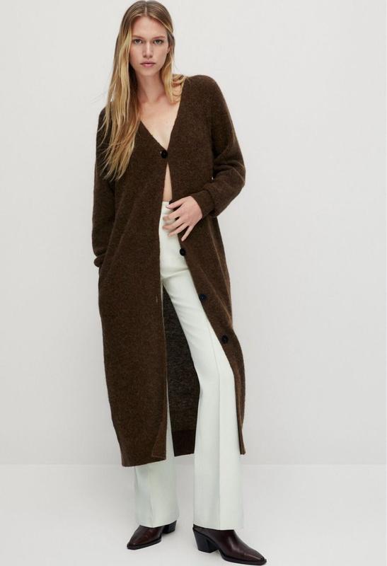 Розмір М Довгий кардиган із альпаки Massimo Dutti 19% шерсть, 35% альпака, 46% поліамід. Заміри ПО грудей 49+ см ПО талії 44+ см ПО стегон 50 + см Довжина 127 см Рукав від горловини 75 см