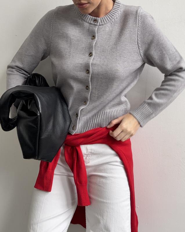 Стильний вкорочений кардиган у сірому кольорі. Розмір XS-S. 62% нейлон, 38% поліестер.