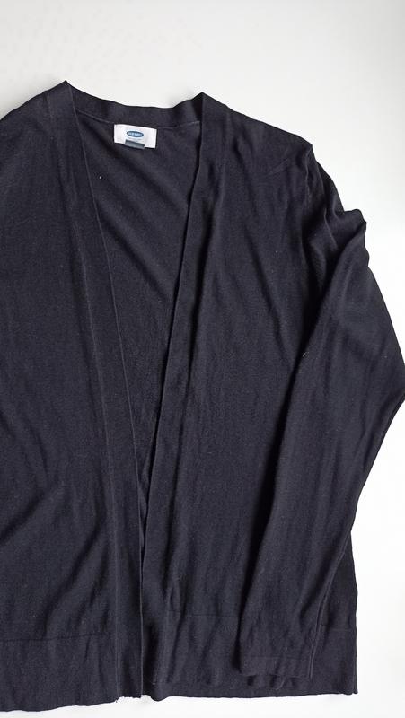Предлагаю базовый трикотажный черный кардиган Old Navy Стан идеальный.Без дефектов Размер указанного М Длина 60 см Рукав 66/46 см Плечи 39 см Полуширина под рукавами 48 см Тонкий трикотаж 60% Коттон,40% вискоза