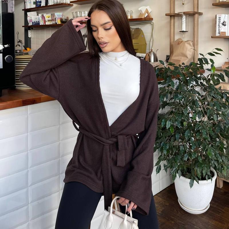 NEW🔥 ФОТО РЕАЛ‼️ 🔸Вʼязаний кардиган ▪️Модель: 1662 ▪️Ткань: ангора вязкая Турция ▪️Размер: 42-46 (one size) ▪️Цвет: шоколад, графит, капучино, барби, молоко Супер качество по низкой цене🔥 💬Мягкий, удобный и стильный вязаный кардиган: Пояс в комплекті. Идеальная база для прохладных дней🥰 ПАРАМЕТРИ Длина 70 см ОГ 110 см Рукав от ворота 75 см