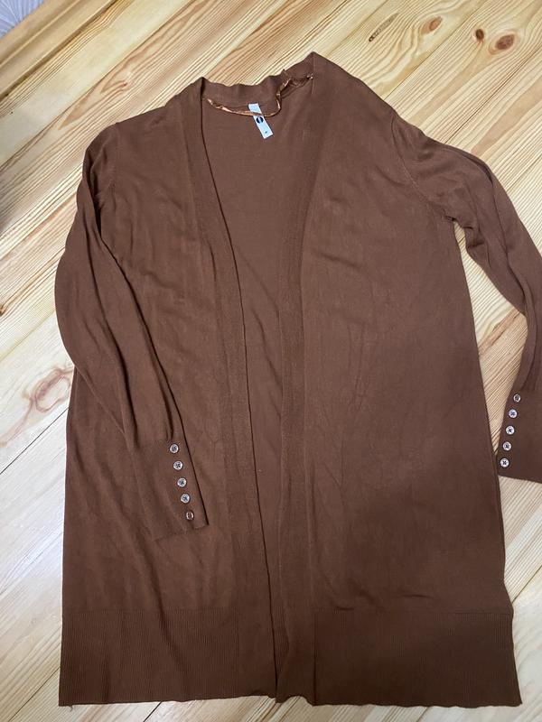 Кардиган в коричневому кольорі, тонка вʼязка, на рукавах гудзички