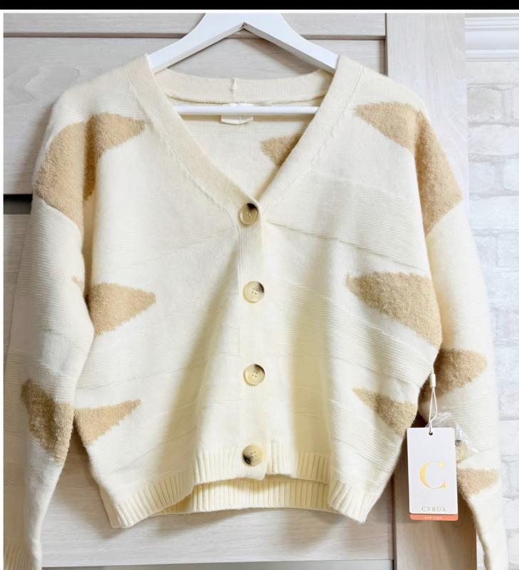 Красивый кардиган, цвет айвори с бежевыми вставками теди между подмышками 57 см по низу 48 см длина 63 см, рукав спущен