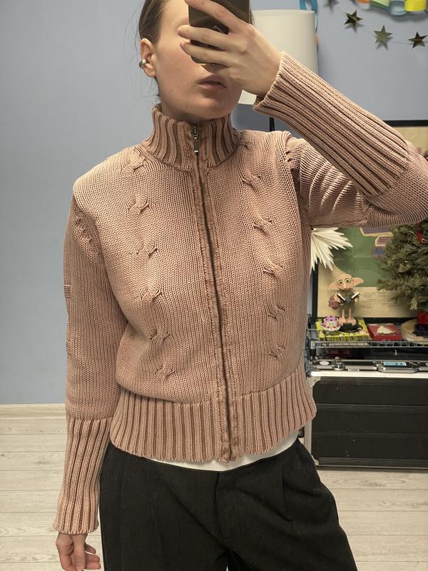 Зіп кофта з ефектом faded, данського бренду Колір пудровий з коричневим Фурнітура YKK Розмір на бірці 36 Вдягнуто на С Заміри: довжина - 52, пог - 47 см, рукав - 58 см, плечі - 39 см