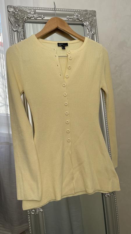 Кардиган Nobody’s Child Розмір S Стан як новий, без плям і катишків Колір — ніжно-жовтий (butter yellow) Склад: 84% віскоза, 16% поліестер Гарно сідає по фігурі, стильний і базовий