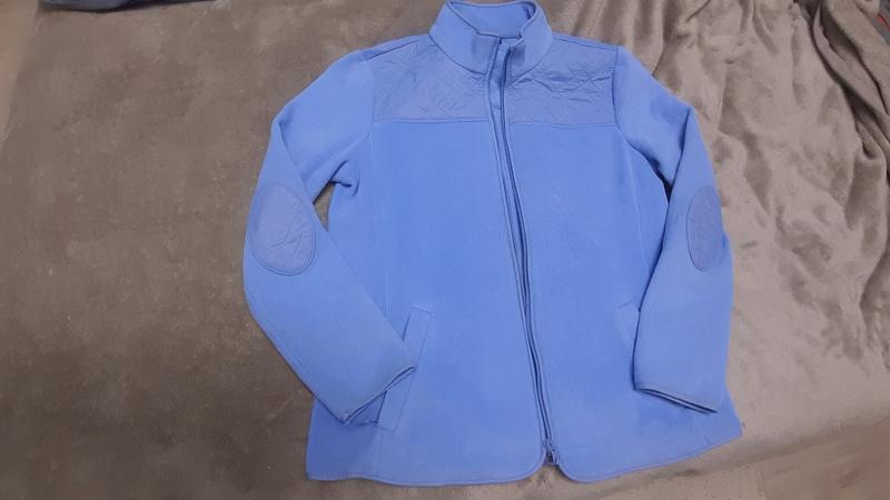 Кофта-куртка для женщин от Talbots в голубом цвете. Добавьте стиль и тепло в свой гардероб с этой красотой. Тепленькая флисочка, на молнии, карманы тоже на молнию. Цвет очень красивый. Длина от ворота 60, длина рукава от ворота 67, под рукавами 50 см., ткань тянется.
