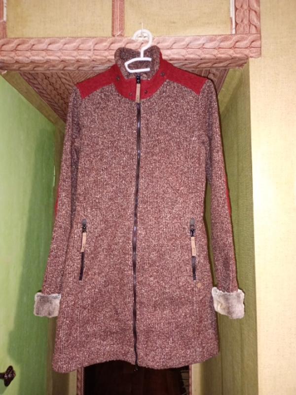 фирменная теплая женская спортивная длинная клетка в идеальном состоянии размер указан 38/S пог 47см в плечах 39см длина рукава от плеча 67см, плюс можно отвернуть манжеты пот 41см поб 50см ширина по низу 56см длина изделия по спине 84см единственный минус -отсутствующий капюшон цвет коричнево-бордовый, не такой яркий, как на фото, а более коричневый, поверхность не гладкая, вязаная
